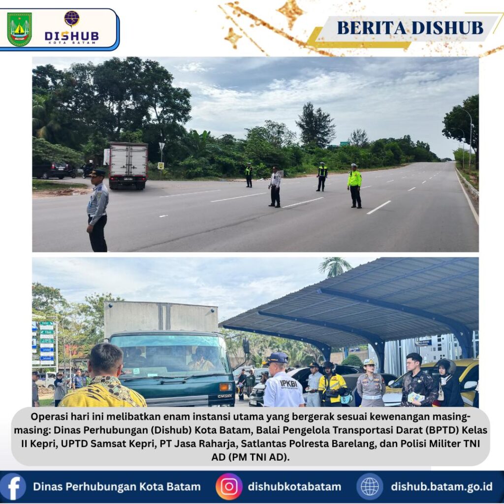 Operasi hari ini melibatkan enam instansi utama yang bergerak sesuai kewenangan masing-masing: Dinas Perhubungan (Dishub) Kota Batam, Balai Pengelola Transportasi Darat (BPTD) Kelas II Kepri, UPTD Samsat Kepri, PT Jasa Raharja, Satlantas Polresta Barelang, dan Polisi Militer TNI AD (PM TNI AD).