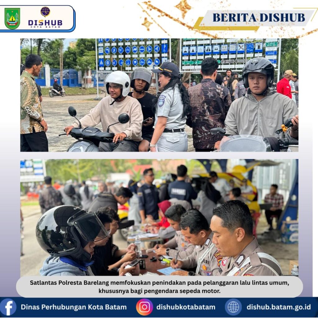 Satlantas Polresta Barelang: Penindakan terhadap pelanggaran lalu lintas umum seperti tidak menggunakan helm, melawan arus, tidak membawa SIM/STNK, hingga penertiban knalpot bising.